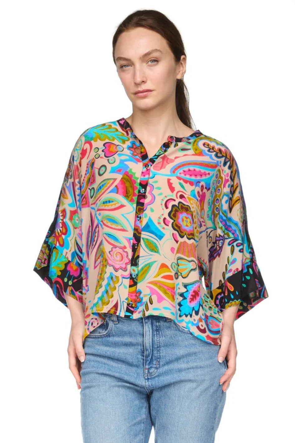 The fully reversible Flow Shrug offers two unique designs to enhance your wardrobe. Featuring a snap-front closure and wide elbow-length Dolman sleeves, this shrug is finished with a relaxed bodice for a flowing silhouette. Layer over an A-line dress and pair with coordinating flats for a polished evening look.