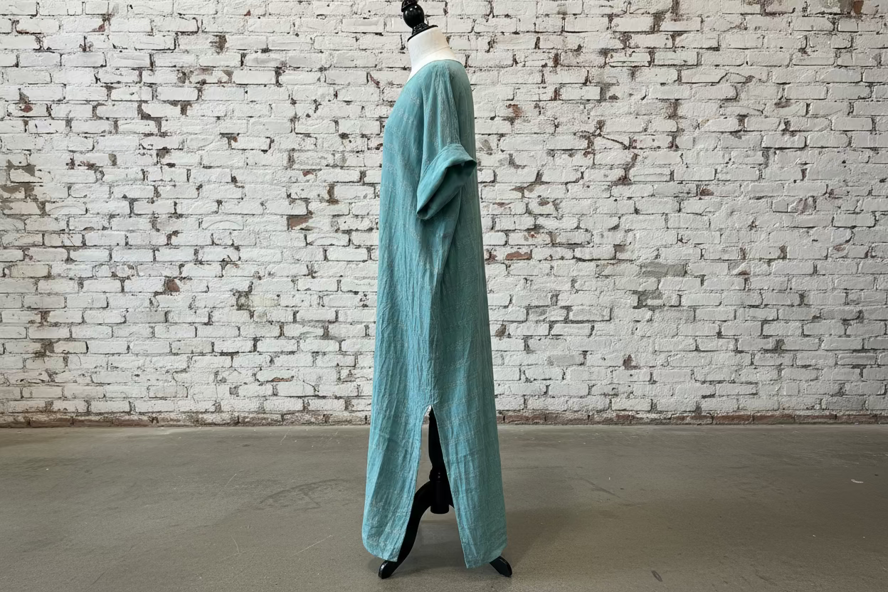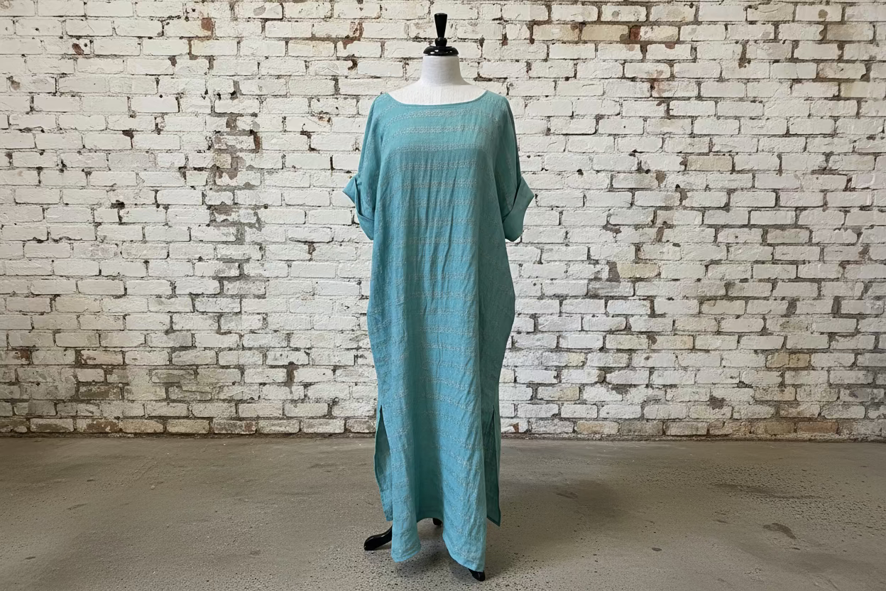 Air-dry flat or on a padded hanger. If tumble drying, use low heat. Do not iron — the natural texture of the linen is part of its charm. Store away from direct sunlight to preserve colour and quality.