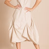 The pima origami dress is an exquisite statement piece, defined by its sculptural A-line silhouette and artfully placed origami-inspired folds at the hem. Constructed from crisp mid to light weight pima cotton, it strikes a perfect balance between structure and lightness making it a captivating addition to any special occasion wardrobe.