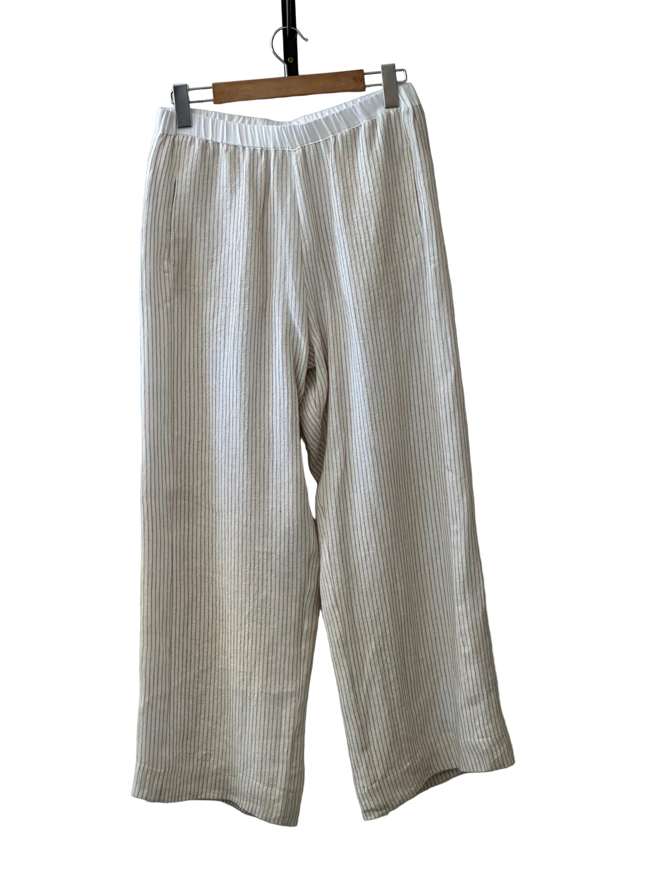 An airy, wide leg linen pant with lined elasticated waist and side pockets.