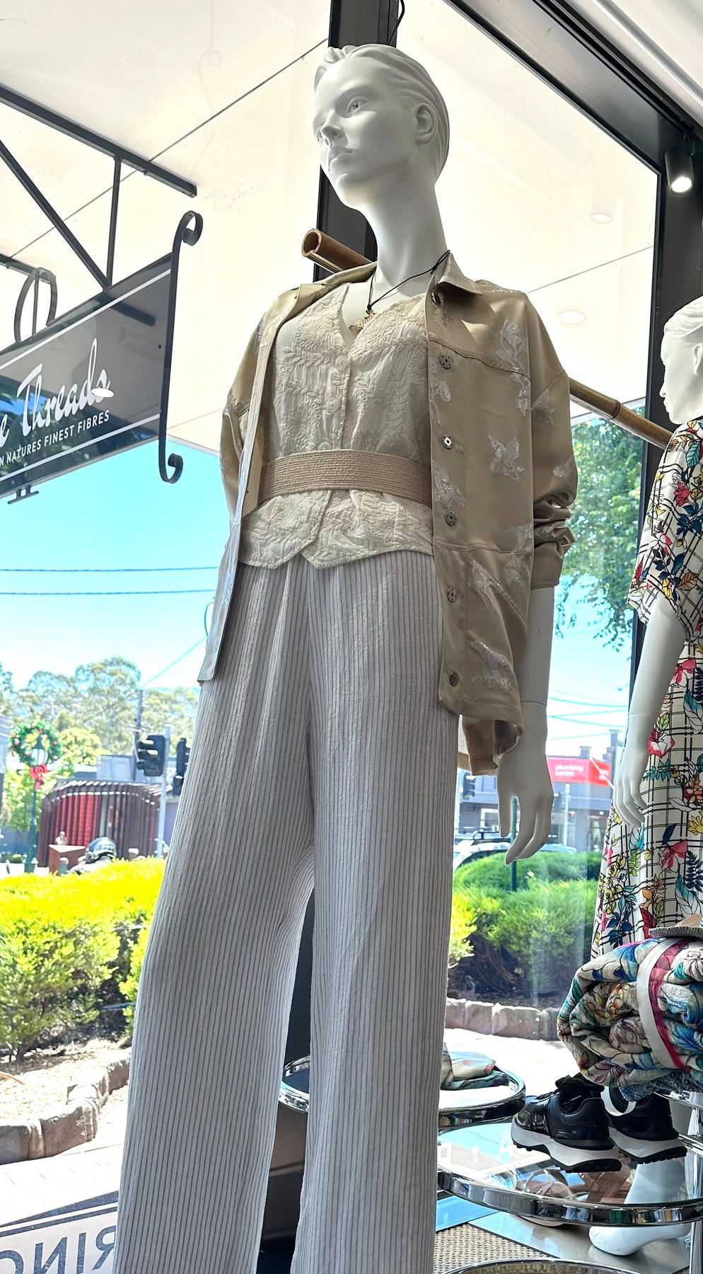Vale and Ward - Connor Pant. Ivory Stripe.