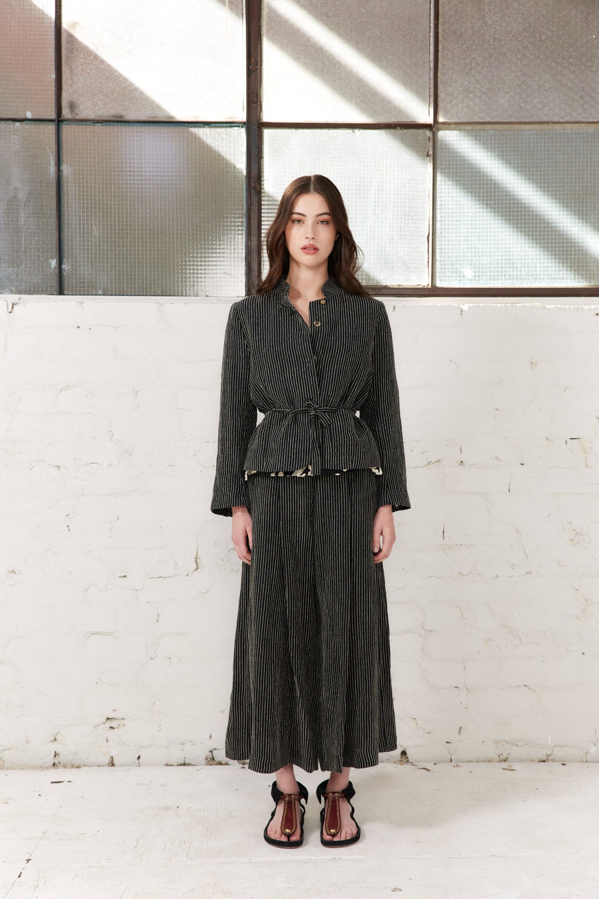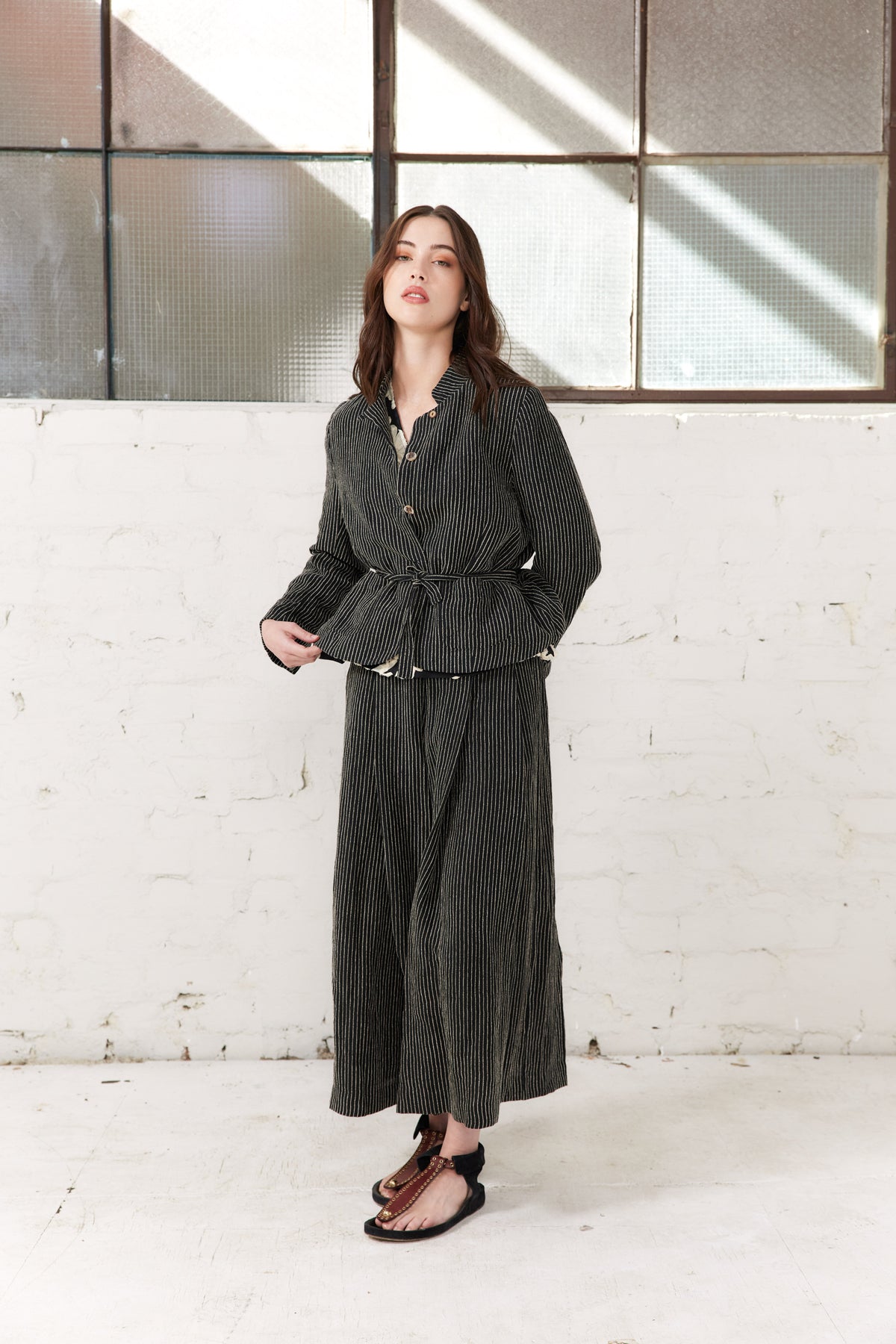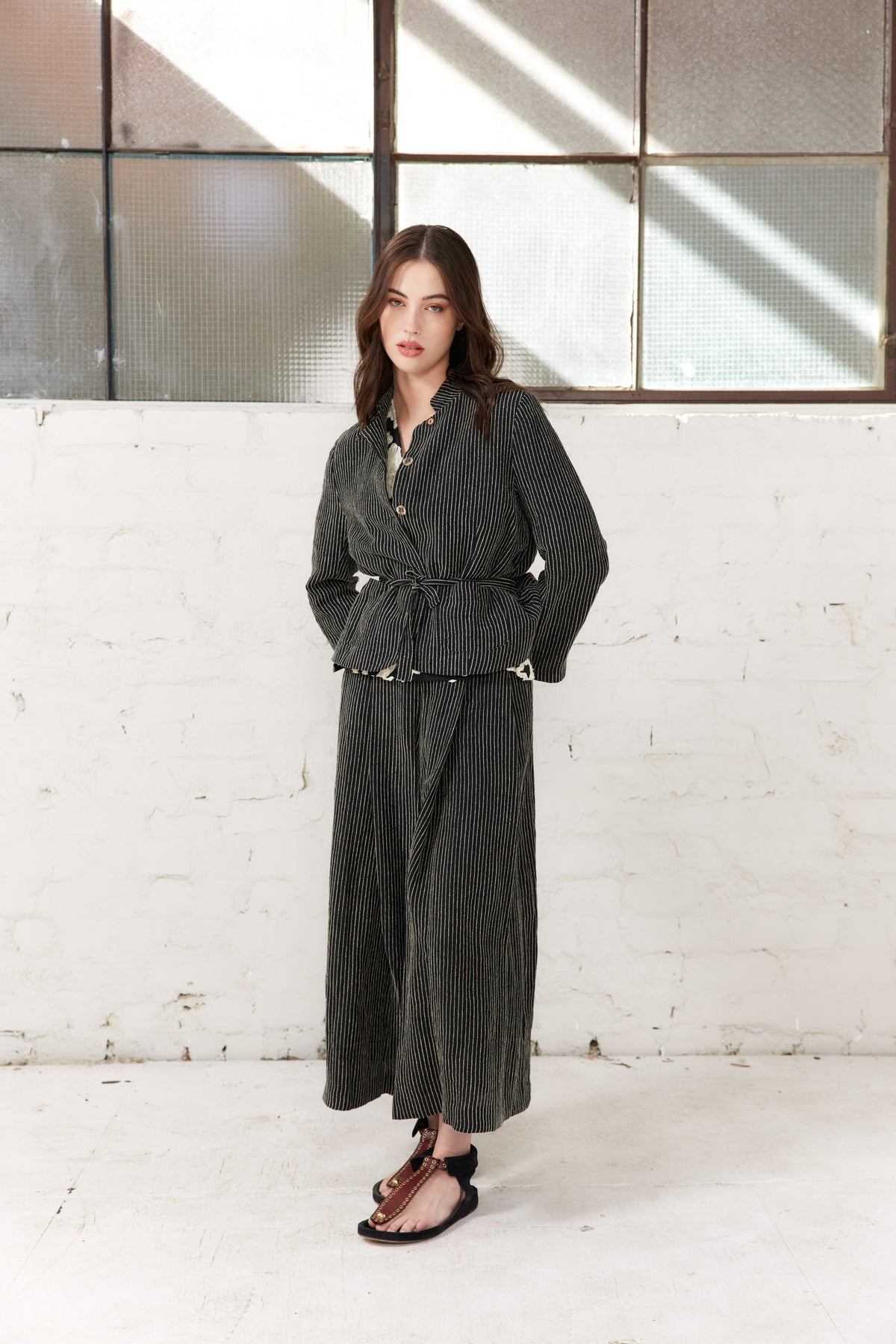 An airy, wide leg linen pant with lined elasticated waist and side pockets.
