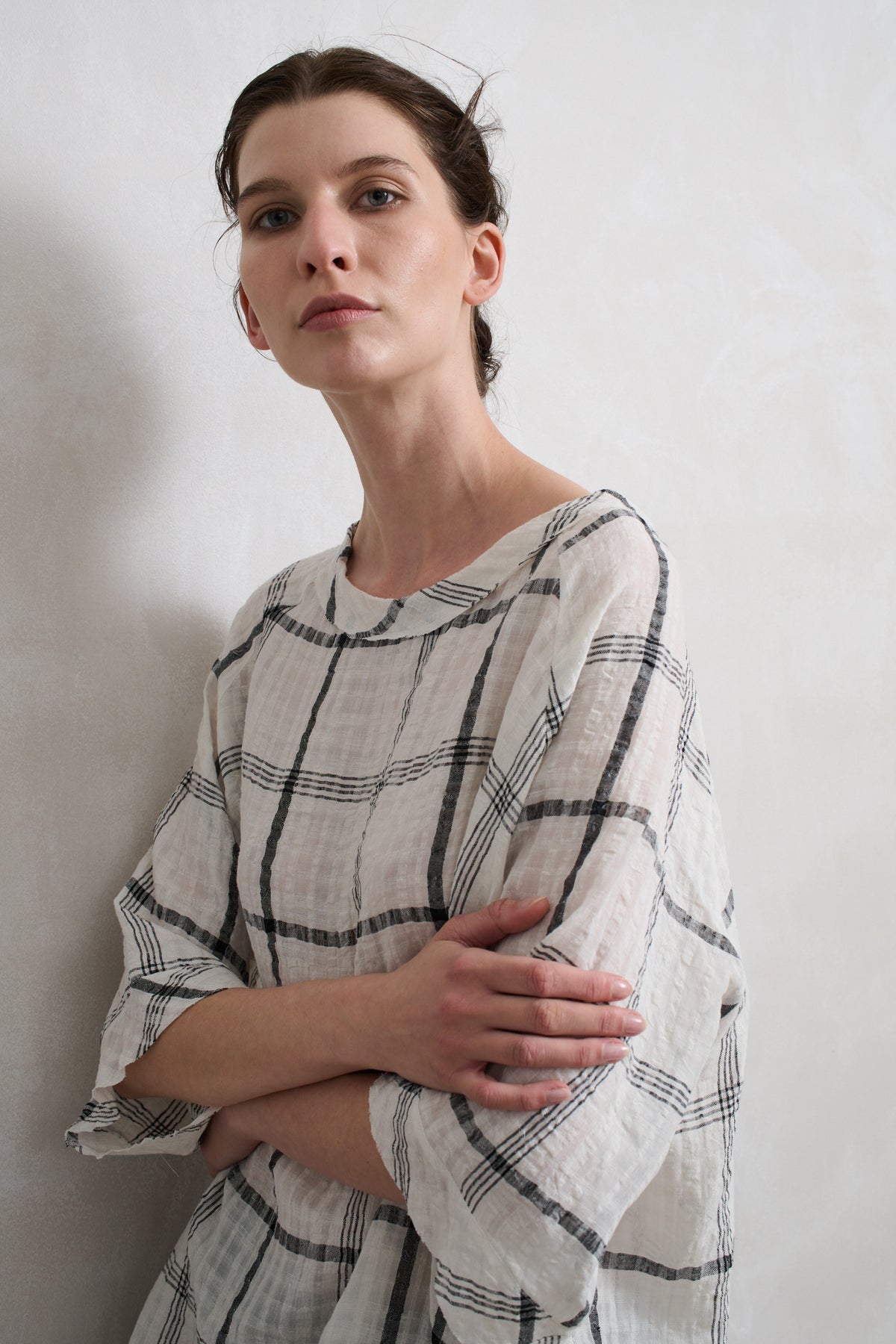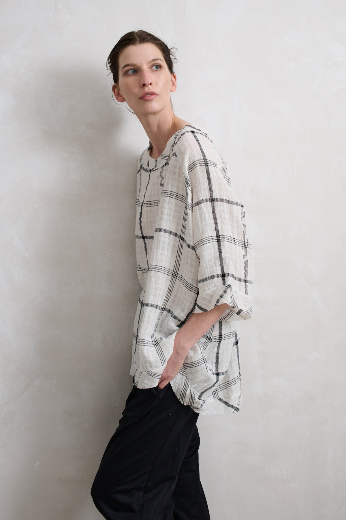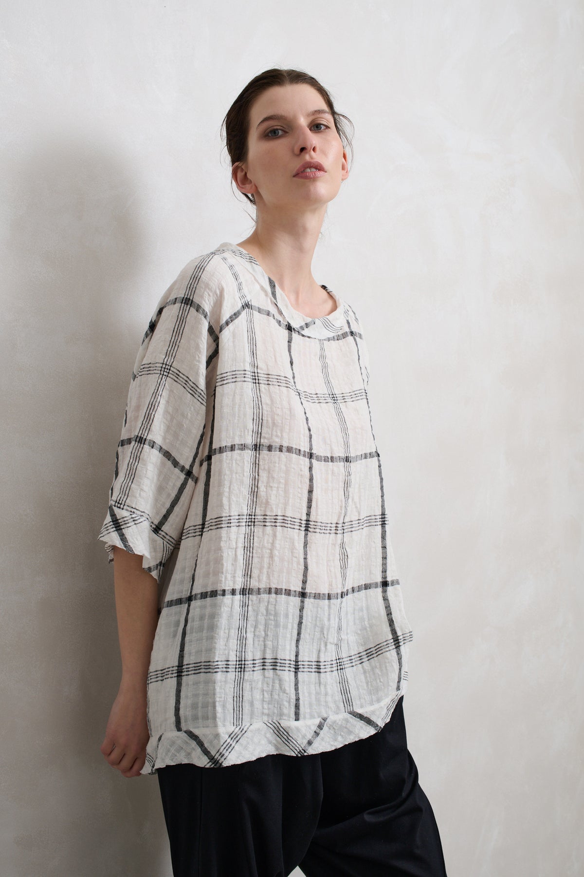 Raglan sleeve, open neck, oversized swing top.
